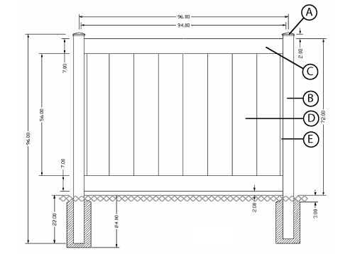 | B | 2 | F10C | 5" × 5" × 108" Co-Extruded Utility Post |