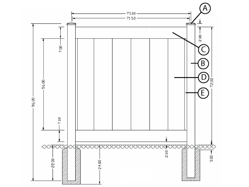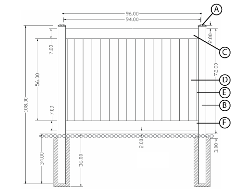 | B | 2 | F10C | 5" × 5" × 108" Co-Extruded Utility Post |