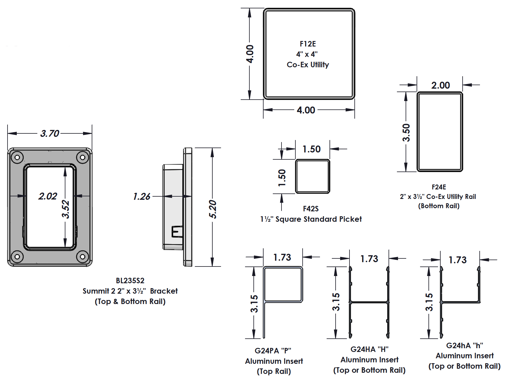| 1 | G24hA | 3.15" × 1.73" "h" Aluminum Insert (Top or Bottom Rail) |