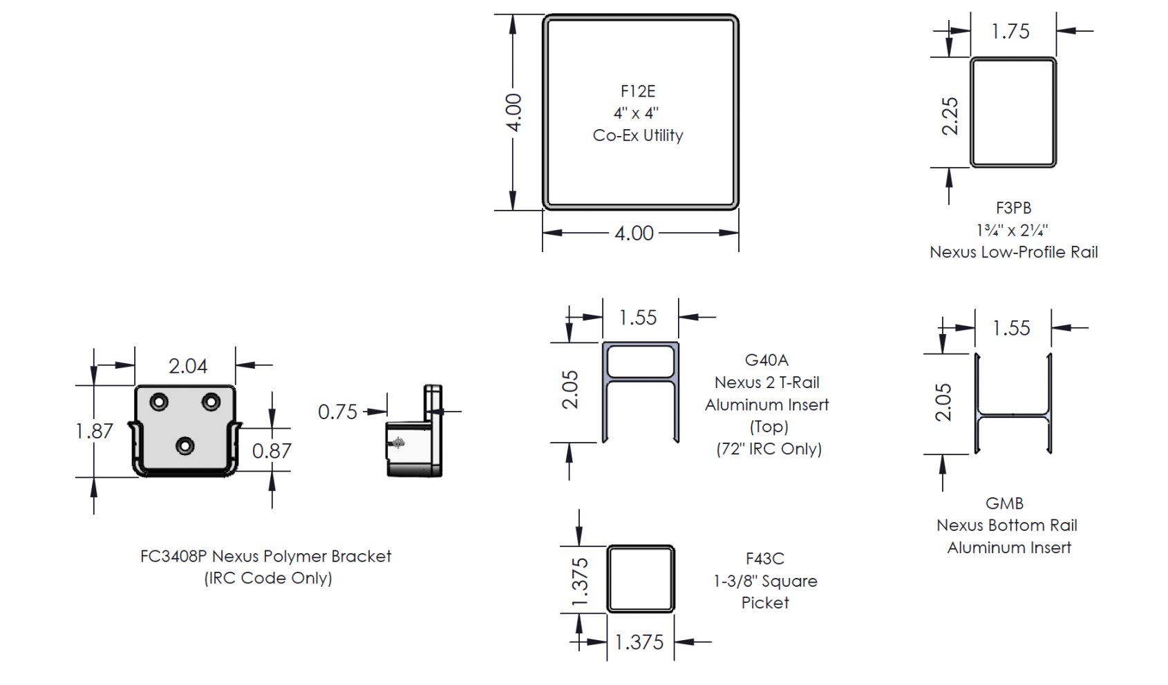 2F3PB1¾" × 2¼" Nexus Bottom Rail