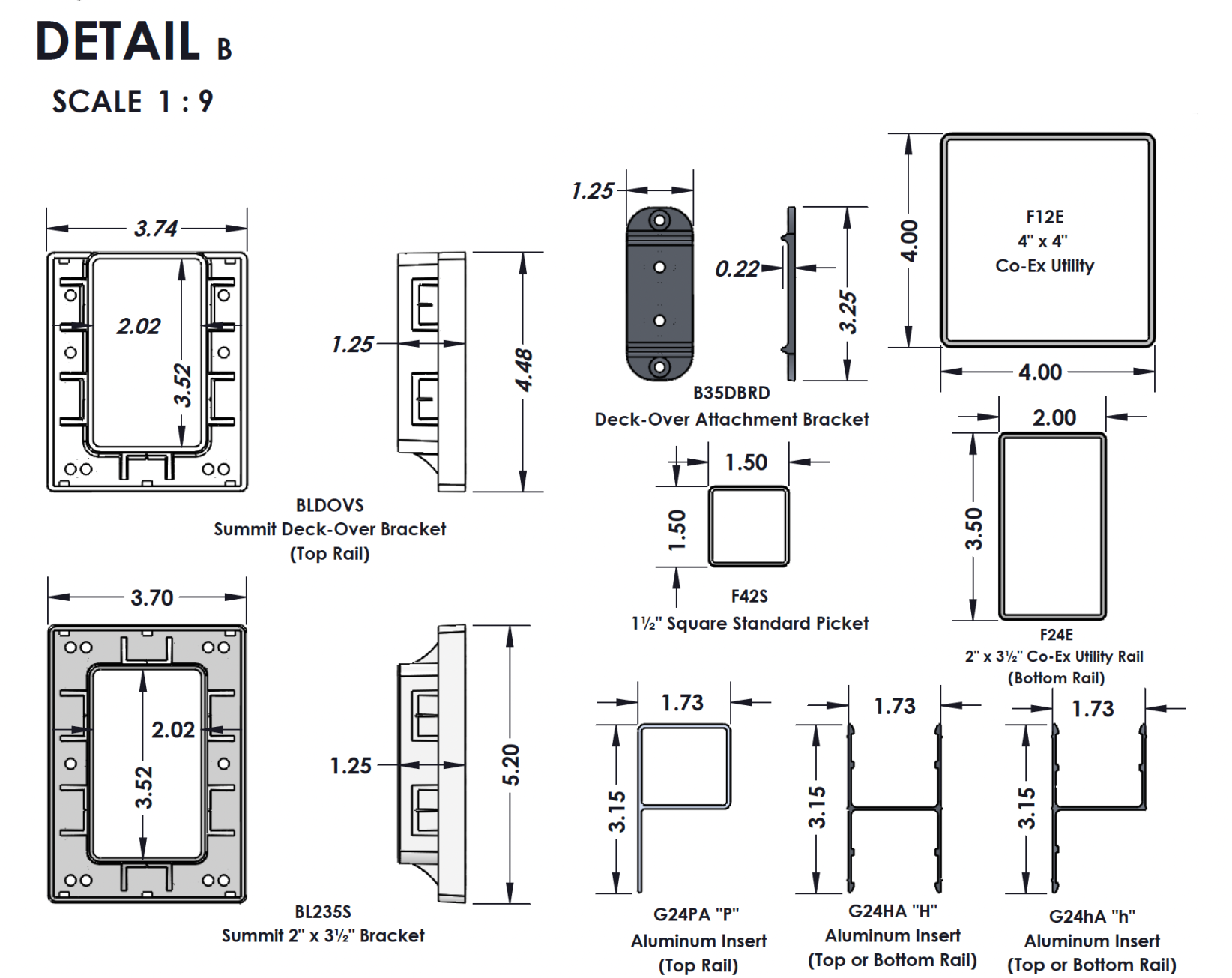 | 1 | BL235S | Summit 2" × 3½" Bracket Kit (2 Brackets, cover clips w/ screws) |